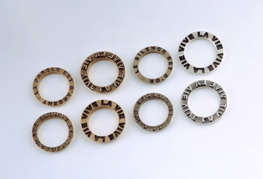 Une bague en deux parties s'ouvrant sur un message gravé dans l' or, l'argent ou le platine .